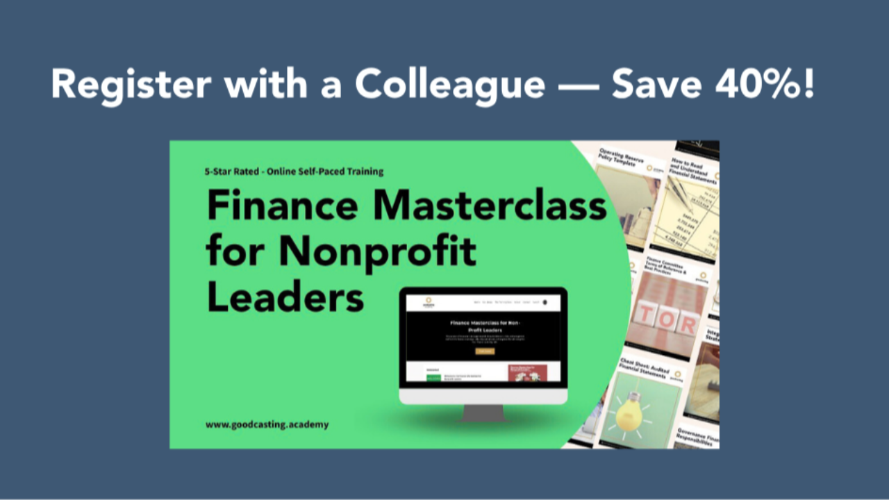 - Get a 25% discount on the Finance Masterclass for Nonprofit Leaders and more
